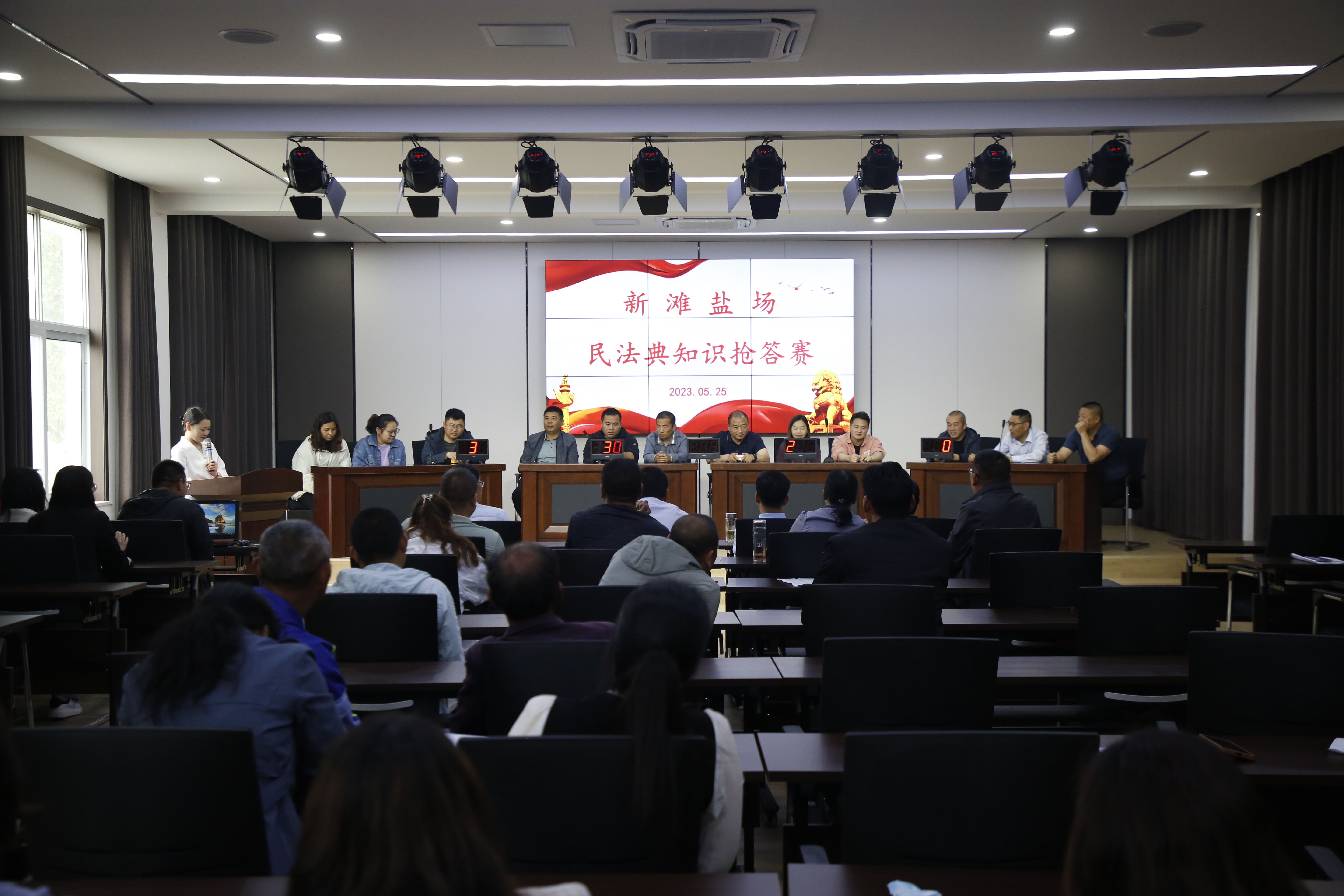 法治興則國(guó)興,法治強(qiáng)則國(guó)強(qiáng)。為全面貫徹落實(shí)黨的二十大精神,深入學(xué)習(xí)貫徹習(xí)近平法治思想,進(jìn)一步加強(qiáng)民法典宣傳教育工作,積極營(yíng)造尊法學(xué)法守法用法的良好氛圍,按照集團(tuán)《關(guān)于組織開(kāi)展“民法典宣傳月”活動(dòng)的通知》要求,5月25日下午,新灘鹽場(chǎng)開(kāi)展民法典知識(shí)搶答賽。2023-05-26 -